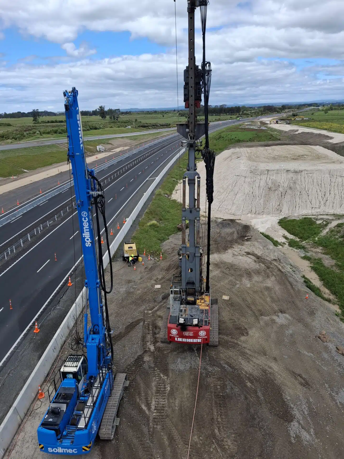 Post‑installation Cone Penetration Testing (CPT) verified that the ground improvement met all design criteria, ensuring a safe and durable foundation for the new interchange.